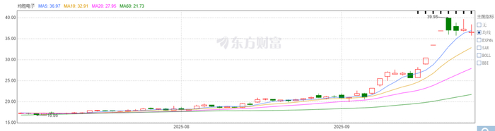 三季度以来,均胜电子股价已从7月不到17元/股的低点暴涨至接近40元/股,成功翻倍。