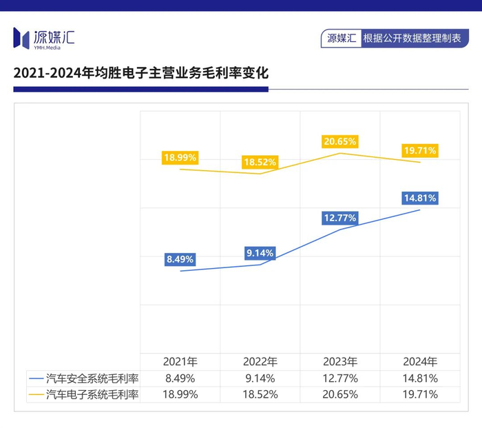但这项业务也面临挑战。均胜电子的安全类产品毛利率长期偏低,近年基本都是维持在15%以下,2021-2022年甚至低于10%。