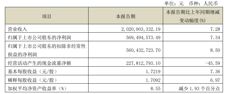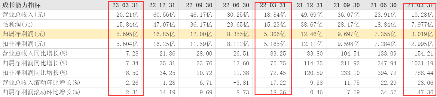 2023年1季度,舍得酒业营收20.21亿元,同比增速7.28%,归属净利润5.7亿元,同比上升7.34%、扣非净利润5.6亿元,同比上升8.5%。