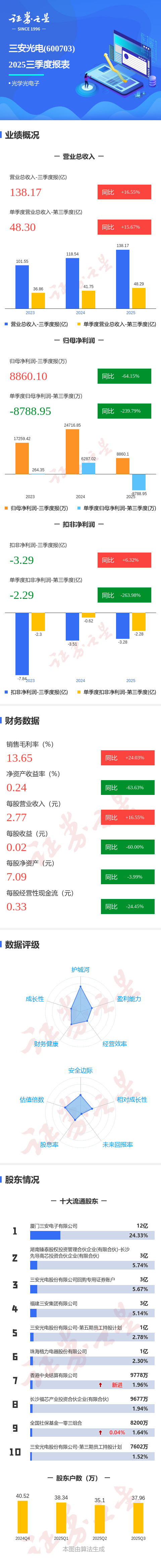 图解三安光电三季报:第三季度单季净利润同比下降239.80%