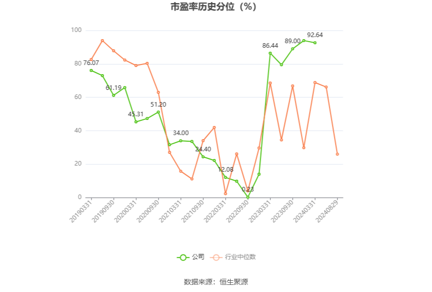 市盈率为负时,不显示当期分位数,会导致折线图中断。