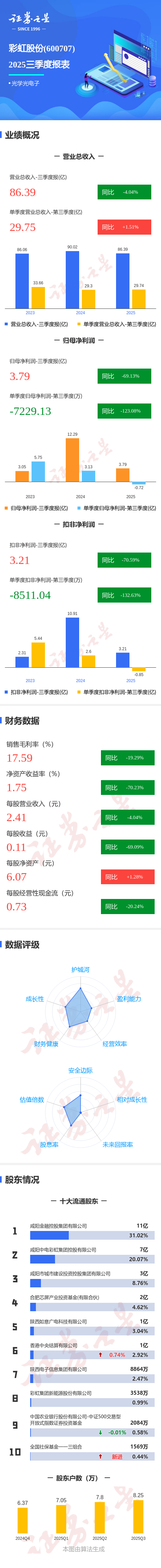 图解彩虹股份三季报:第三季度单季净利润同比下降123.08%