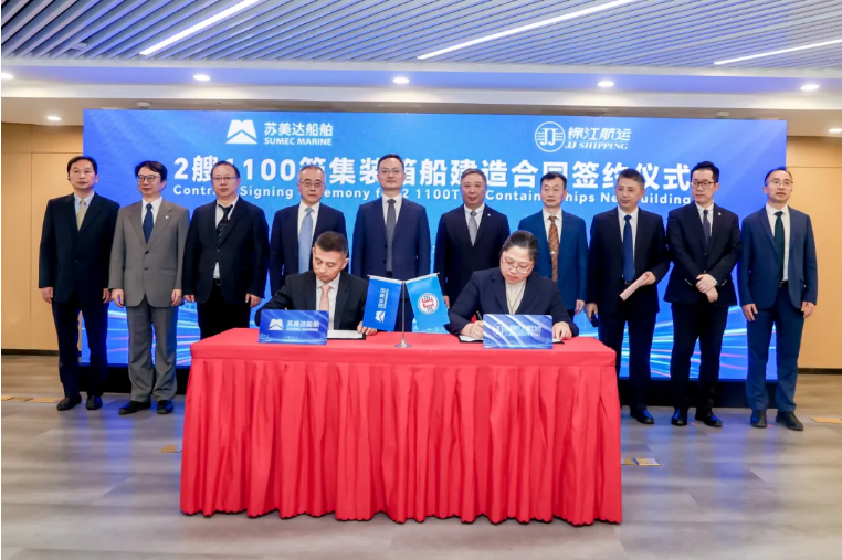 就在12月23日,锦江航运与苏美达船舶在上海签署2艘1100TEU集装箱船建造合同,这是继今年9月双方签署2艘新造船后的再次携手,标志双方合作迈入深化阶段;上海海事局、中国船级社上海分社、上海船舶研究设计院等单位共同出席见证。随着此次与工银金租、五矿物流的散货船项目同步落地,苏美达在“制造+金融+物流”等多维协同模式上的项目推进进一步加快,也释放出其围绕运力供给与产业链服务持续发力、订单动能延续的积极信号。