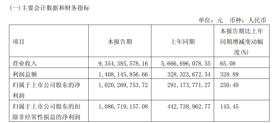 4月20日晚间,盛屯矿业(维权)发布的一季报显示:公司实现营业总收入93.54亿元,同比增长65.08%;归母净利润10.2亿元,同比增长250.40%。