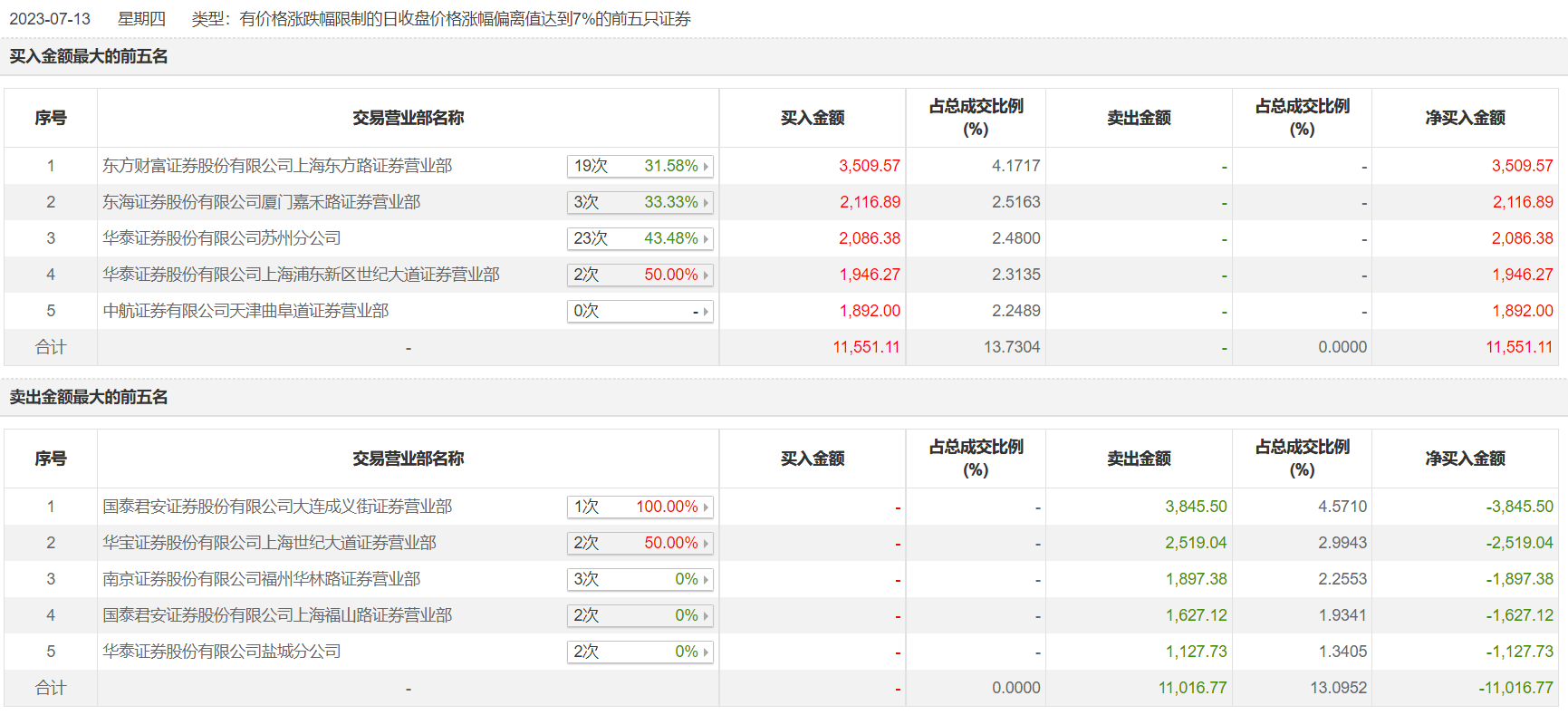 具体来看,东方财富证券上海东方路证券营业部、东海证券厦门嘉禾路证券营业部分别买入3509.57万元、2116.89万元;国泰君安证券大连成义街证券营业部、华宝证券上海世纪大道证券营业部分别卖出3845.50万元、2519.04万元。
