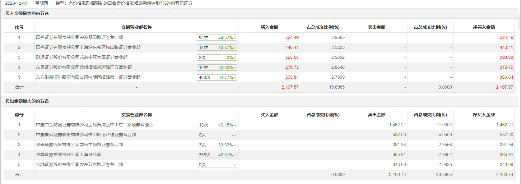 12月14日,云维股份今日涨停,龙虎榜数据显示,上榜营业部席位全天成交5208.31万元,占当日总成交金额比例为39.29%。其中,买入金额为2107.57万元,卖出金额为3100.74万元,合计净卖出993.17万元。