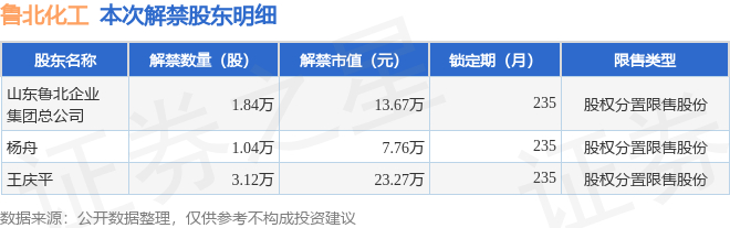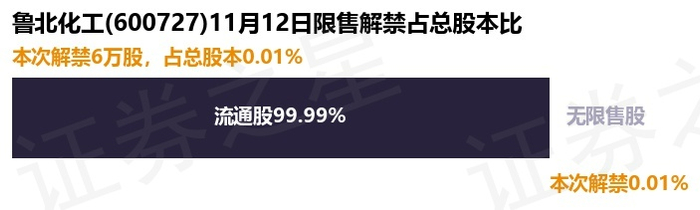 鲁北化工(600727)6万股限售股将于11月12日解禁,占总股本0.01%