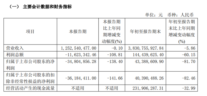 图片来源:上交所网站截图第三季度亏损、前三季度业绩下滑