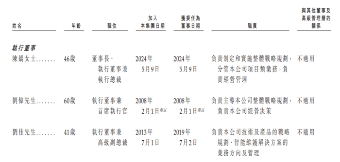 佳都科技执行董事陈娇、刘伟、刘佳,其中,陈娇担任公司董事长、执行总裁,刘伟担任首席执行官,刘佳担任高级副总裁。