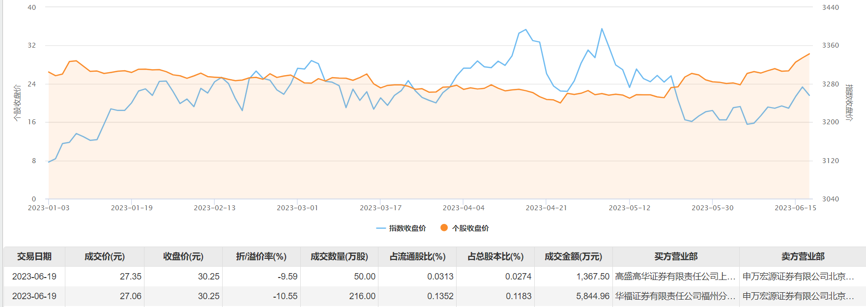 爱旭股份6月19日大宗交易成交266万股,成交额7212.46万元,占当日总成交额的4.47%,成交均价27.11元,较市场收盘价30.25元折价10.38%,其中最高成交价27.35元,最低成交价27.06元。