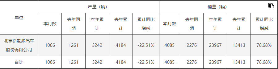 北汽蓝谷:前5月汽车销量合计2.4万辆,同比上涨78.68%