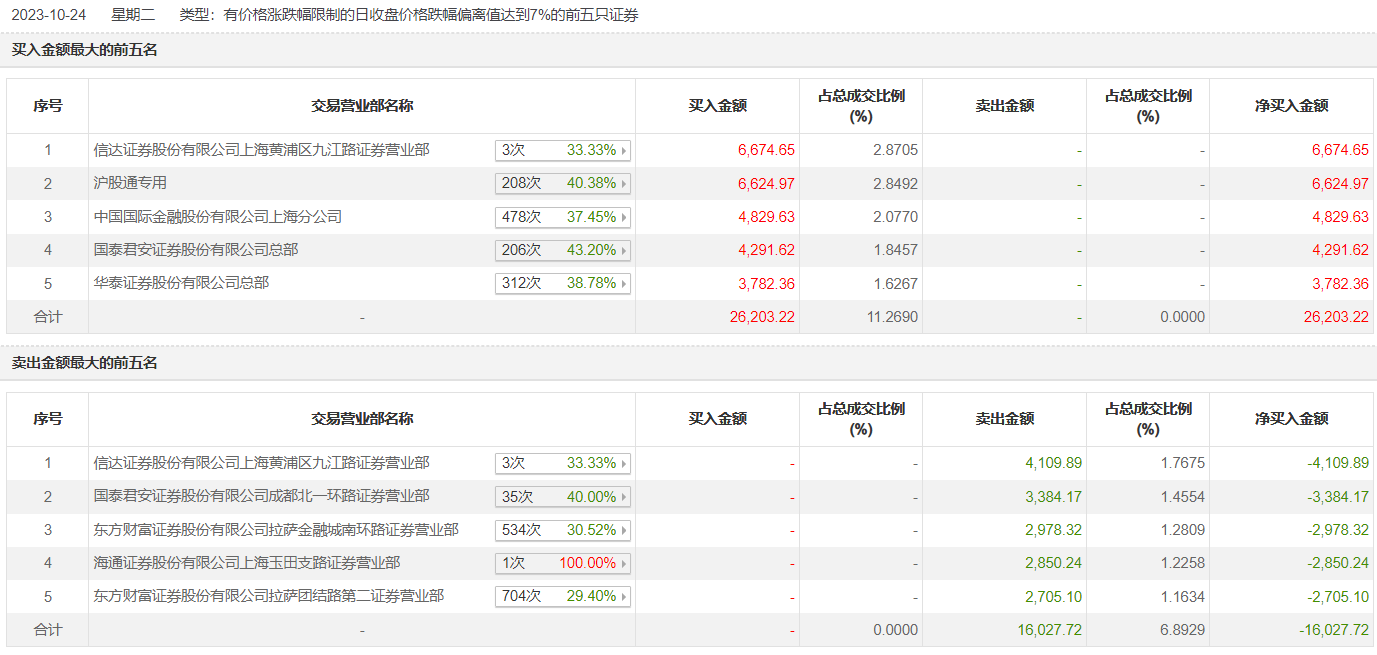 10月24日跌7.65%,成交额23.25亿元,换手率9.19%,盘后龙虎榜数据显示,沪股通专用席位买入6624.97万元。
