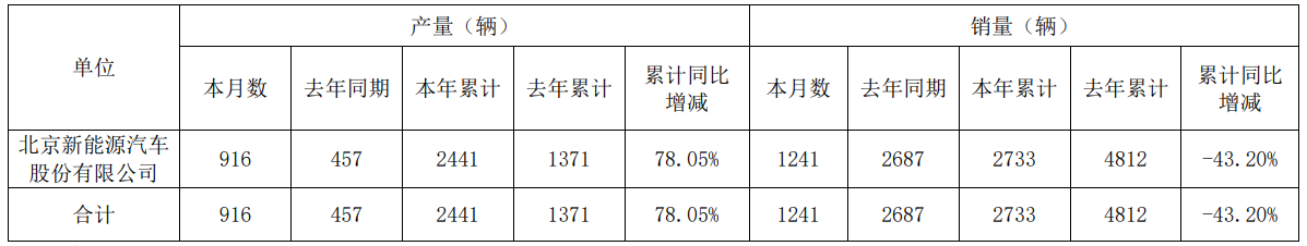 北汽蓝谷:前2月销量2733辆,同比下降43.2%