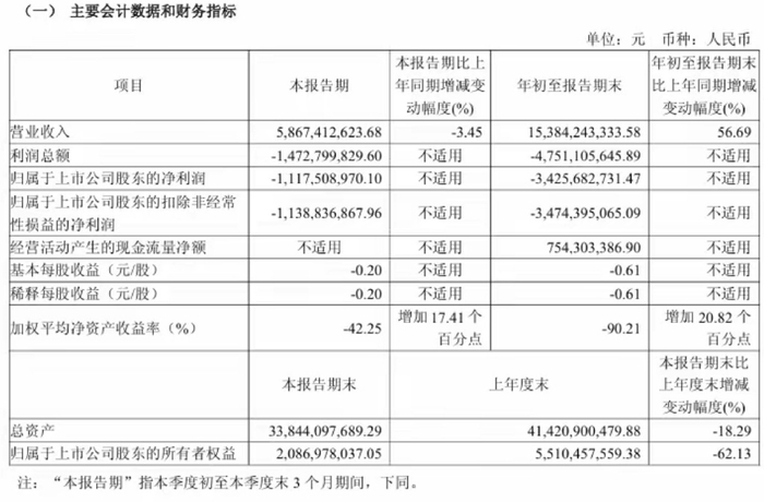 不仅如此,亏损幅度也呈现收窄趋势。官方数据显示,前三季度归母净利润为-34.26亿元,同比减亏23.73%;其中第三季度单季减亏幅度达41.8%。