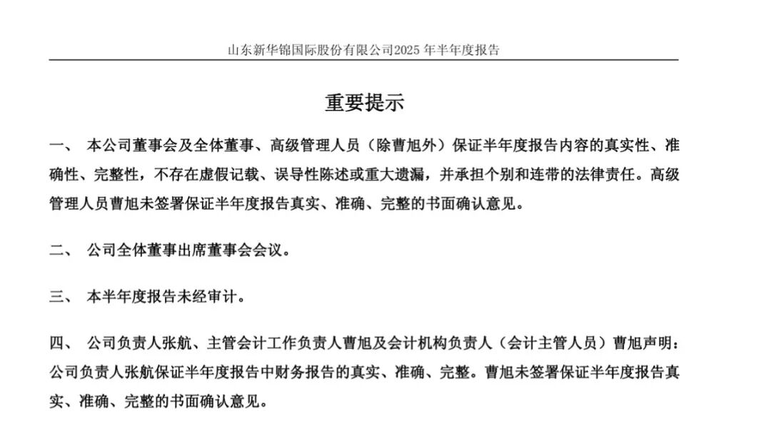 值得注意的是,曹旭曾在新华锦2025年半年报中未签署保证半年度报告真实、准确、完整的书面确认意见,成为当期报告中唯一“缺席”的高管。