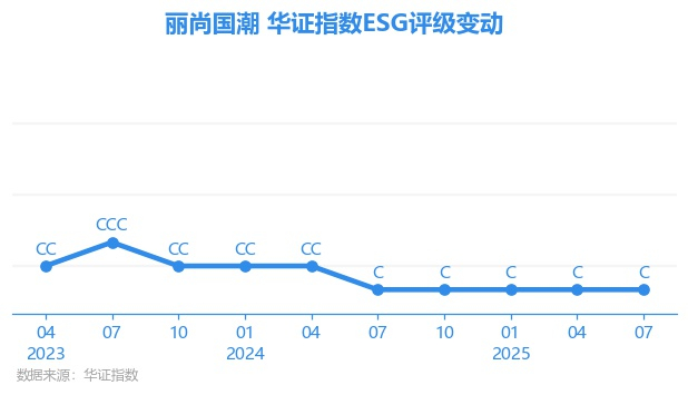 日前,华证指数公布了新一期(2025年7月31日)的ESG评级结果,丽尚国潮(600738.SH)获得C评级(华证指数评级为C起至AAA九档,C为最低档,AAA为其最高一级评级/AA为其第二档),上一期(2025年4月30日)ESG评级为C。本期ESG评级在39家多品类零售行业A股上市公司中排名第36(上一期排名第34)。