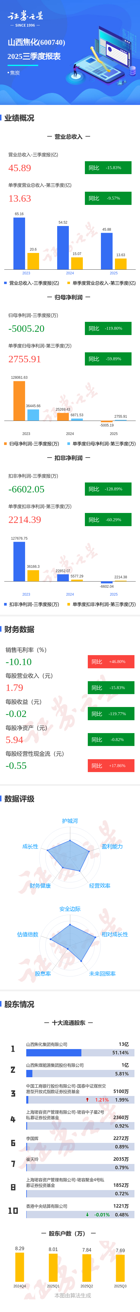 图解山西焦化三季报:第三季度单季净利润同比下降59.89%