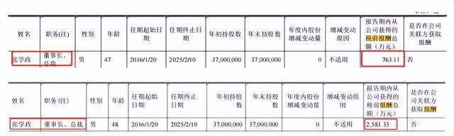 不过,这不影响董事长张学政逆势加薪。2021年和2022年,张学政的职务都是董事长、总裁,没有发生变化,薪酬从763.11万元增长至2581.33万元。