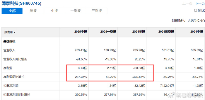 2024年12月,闻泰科技被美国列入实体清单后,闻泰科技产品集成业务遭遇客户信任危机,新项目获取受阻,导致前期确认的递延所得税资产减记,相关商誉发生减值。财务数据显示,截至2025年中报,公司商誉价值高达214.98亿元。