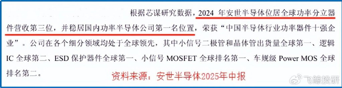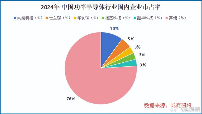 2024年,公司营业收入在全球功率半导体厂商中排名第三,仅次于英飞凌和安森美,并稳居国内榜首。