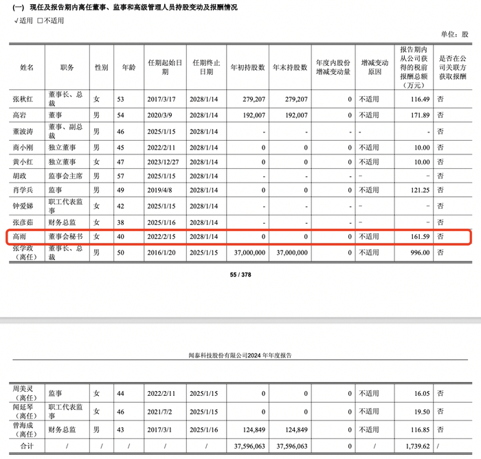 据2024年年报显示,闻泰科技前任董秘高雨的年薪为161.59万元。