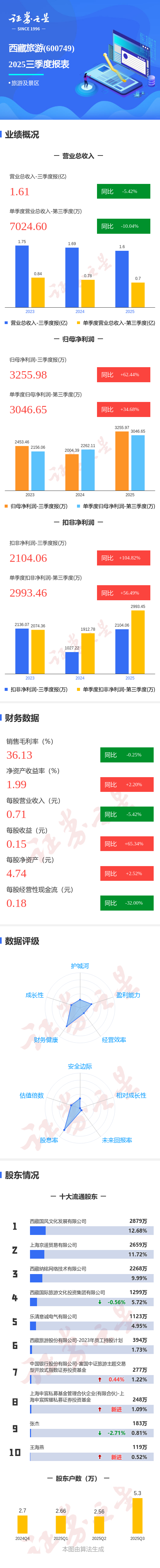 图解西藏旅游三季报:第三季度单季净利润同比增长34.68%