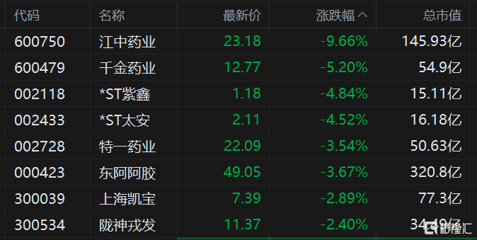格隆汇5月15日丨江中药业触及跌停,千金药业跌超5%,东阿阿胶、特一药业、上海凯宝、陇神戎发等快速跟跌。