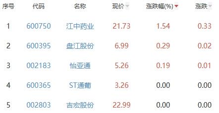 其中,江中药业、盘江股份、怡亚通、ST通葡、吉宏股份位列板块涨幅前五位,涨幅分别为1.54%、0.29%、0.19%、0.00%、0.00%。