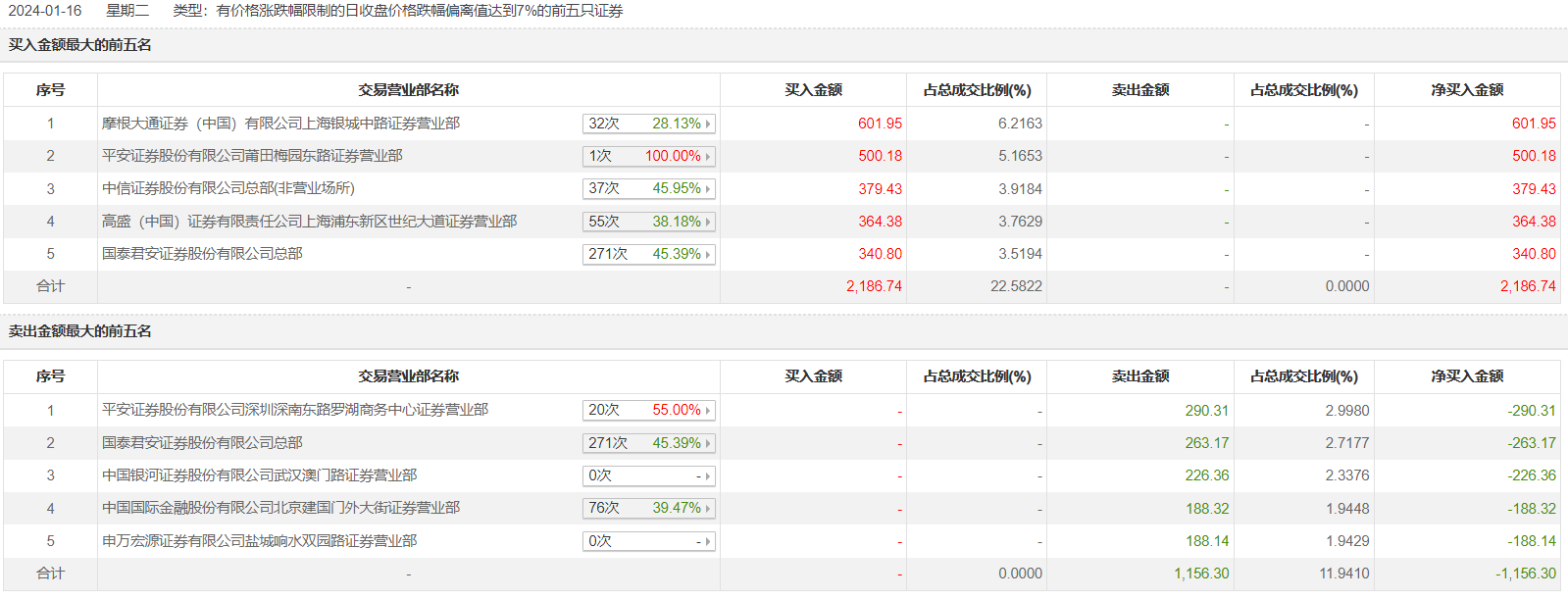 庚星股份(维权)1月16日跌8.13%,全天换手率达4.75%,振幅达4.8%。龙虎榜数据显示,营业部席位合计净买入1030.44万元。其中,平安证券深圳深南东路罗湖商务中心证券营业部、国泰君安证券总部分别卖出290.31万元、263.17万元;摩根大通上海银城中路证券营业部、平安证券莆田梅园东路证券营业部分别买入601.95万元、500.18万元。