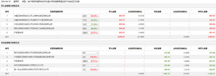 浪潮软件4月18日涨停,龙虎榜数据显示,上榜营业部席位全天成交5128.18万元,占当日总成交金额比例为31.46%。其中,买入金额为3665.81万元,卖出金额为1462.37万元,合计净买入2203.43万元。