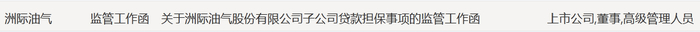 上交所网站截图该公告披露4天后,上交所向洲际油气下发监管工作函,事由为“关于洲际油气股份有限公司子公司贷款担保事项”,涉及对象包括洲际油气、董事、高级管理人员。