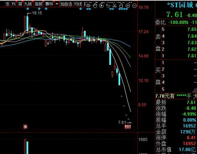 5月17日,*ST园城(园城黄金)开盘跌停,最新报价7.61元,总市值17.06亿元。这是园城黄金A 股简称变为*ST 园城的第二个跌停。