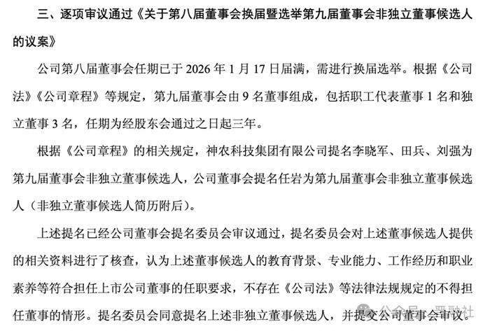 董事会换届落地在即,广誉远新一届高管团队名单也将于近期公布。值得关注的是,本次披露的第九届董事会候选人名单中,尚未明确职工董事人选,另有一位非独立董事人选暂未公布,董事会完整阵容有待后续进一步披露。