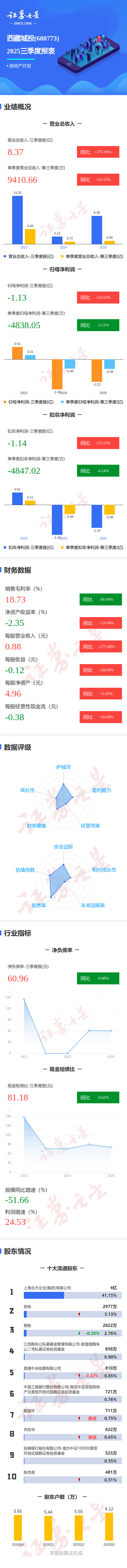 图解西藏城投三季报:第三季度单季净利润同比下降3.51%