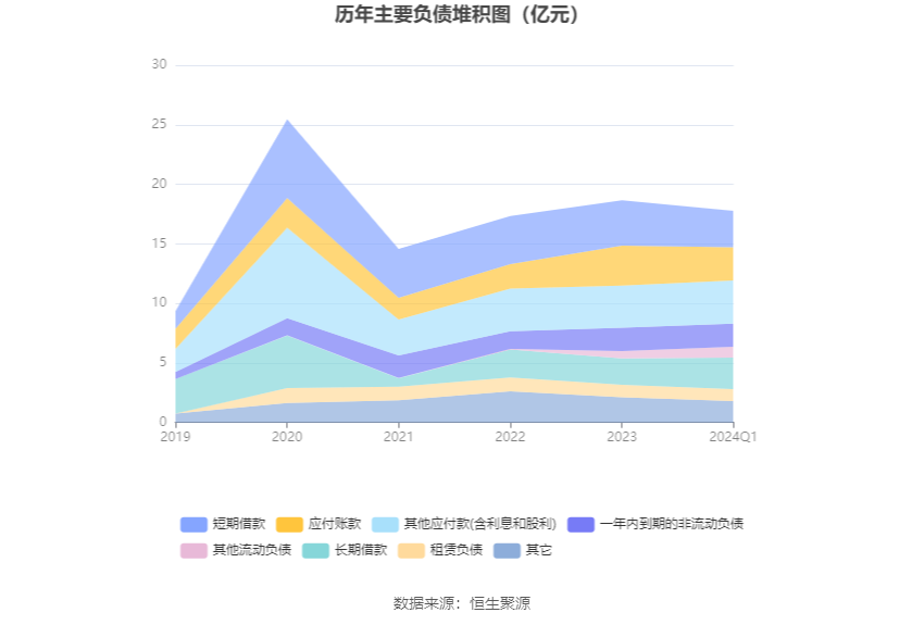 负债重大变化方面,截至2024年一季度末,公司短期借款较上年末减少19.81%,占公司总资产比重下降1.87个百分点;应付账款较上年末减少16.91%,占公司总资产比重下降1.37个百分点;长期借款较上年末增加19.17%,占公司总资产比重上升1.30个百分点;其他流动负债较上年末增加48.11%,占公司总资产比重上升0.86个百分点。