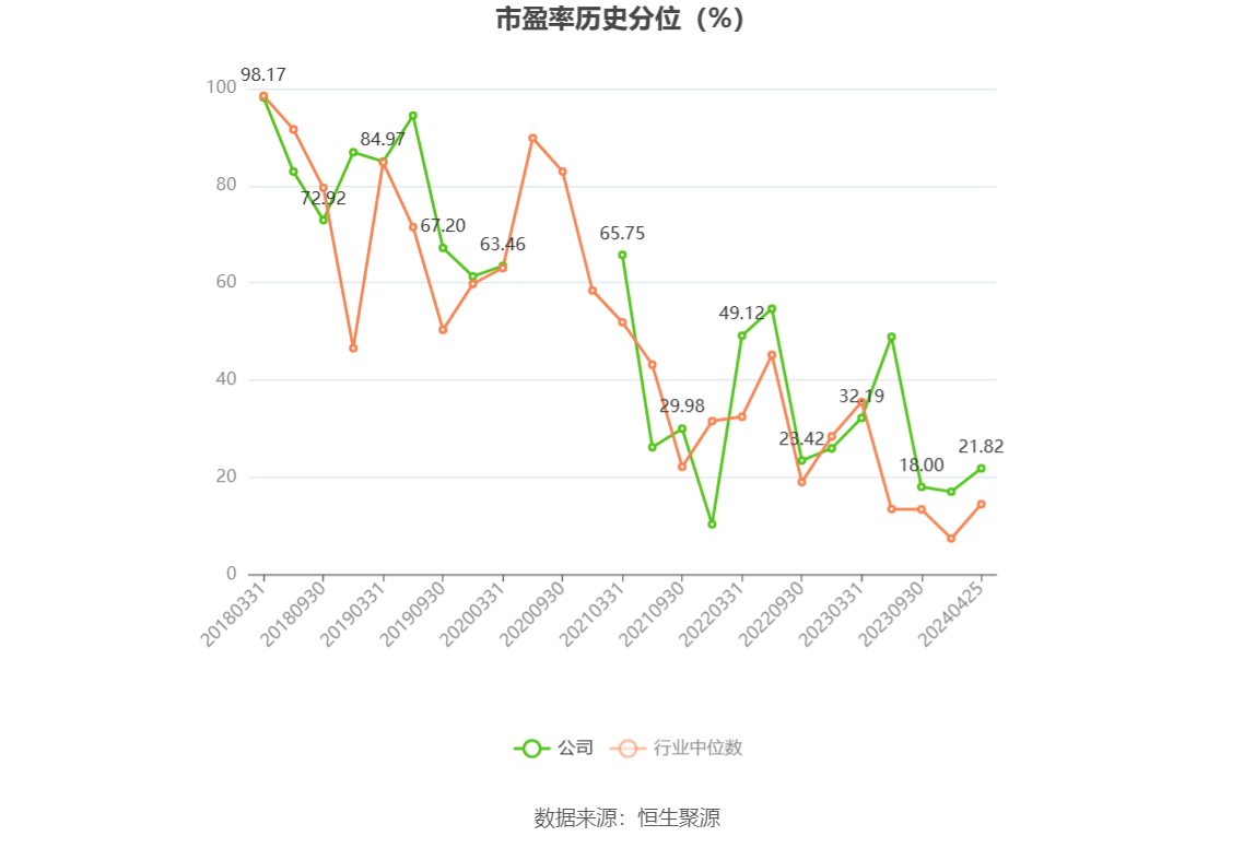 市盈率为负时,不显示当期分位数,会导致折线图中断。