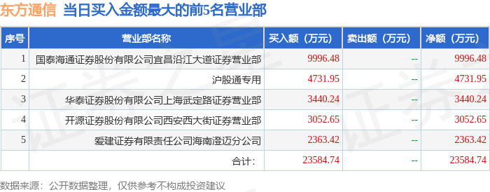 12月30日东方通信(600776)龙虎榜数据:游资消闲派上榜