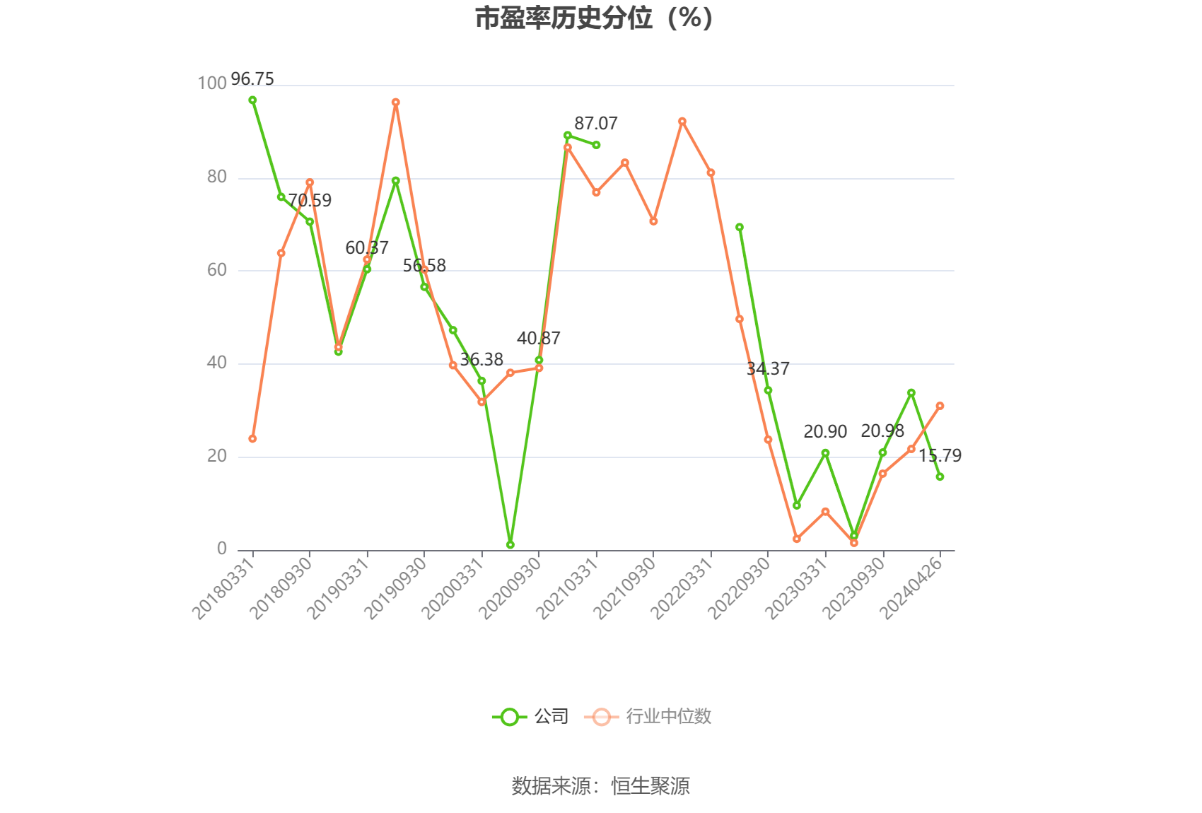 市盈率为负时,不显示当期分位数,会导致折线图中断。