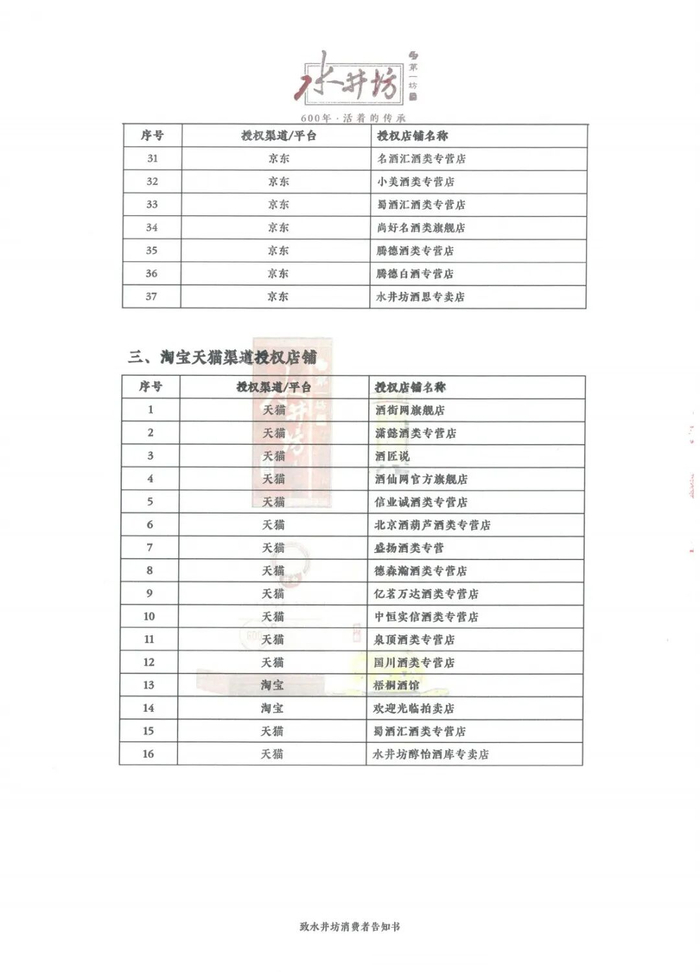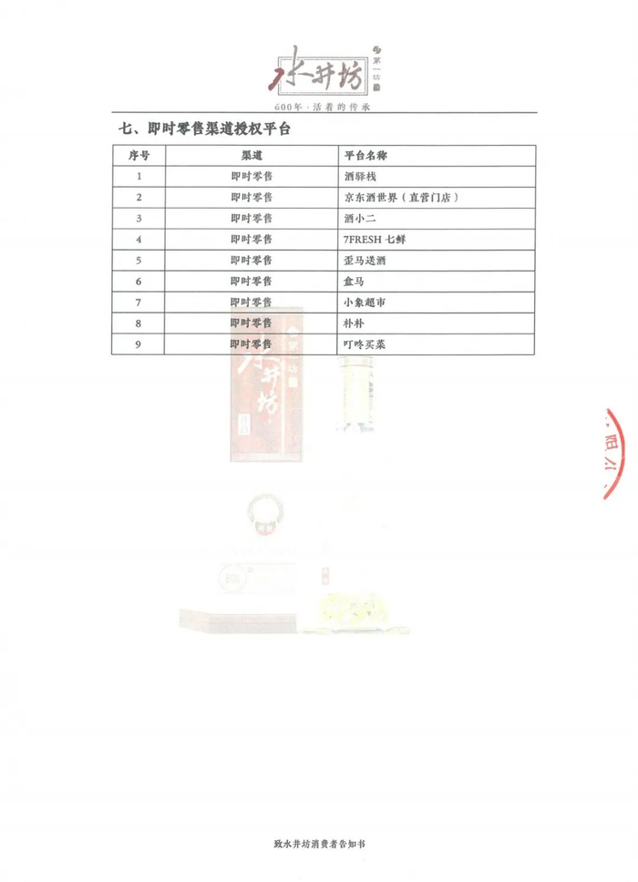 水井坊公布123家线上渠道官方授权店铺,坚决打击假冒、侵权等不法行为