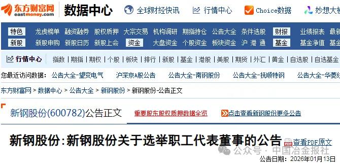 近日,新钢股份发布了关于选举职工代表董事的公告(以下简称“公告”)。