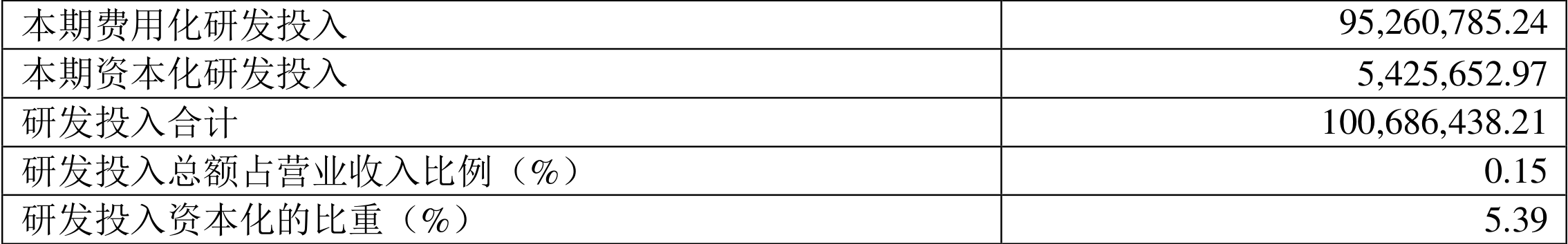 2023年全年,公司研发投入金额为1.01亿元,同比增长41.33%;研发投入占营业收入比例为0.15%,相比上年同期上升0.06个百分点。此外,公司全年研发投入资本化率为5.39%。