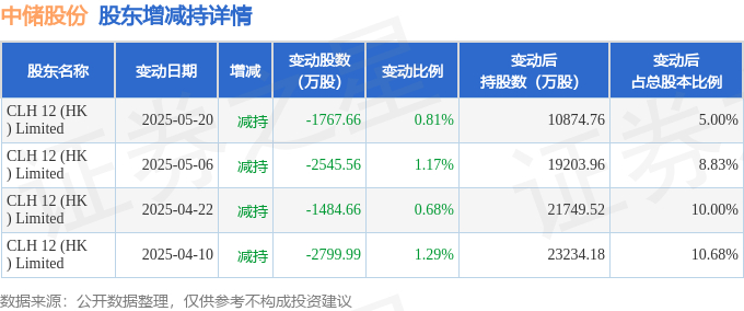 该股近半年内有股东持股变动,合计净减持8597.87万股,股东增减持明细如下表: