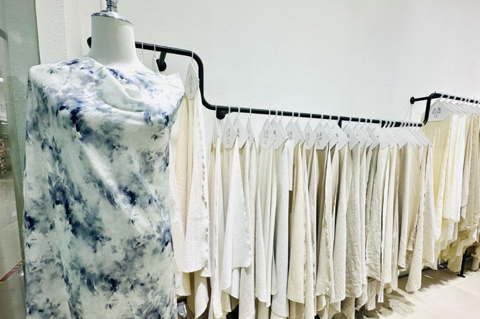 “依托东市场在时尚女装面料领域的深厚基础,以及汉服面料专区三年来的运营经验,我们紧贴消费趋势,顺势推出‘麻类面料专区’。这不仅是资源的整合,更是我们作为‘时尚女装面料第一站’品牌内涵的延伸。”孟伟东介绍。目前,专区规划面积已达6000余平方米,约150间营业房,汇聚了近百家具备强大生产能力与创新设计实力的优质麻料企业,通过产业集聚与品牌塑造,这里正崛起为市场新地标。步入专区,亚麻的挺括、苎麻的清凉、汉麻的抗菌——在一个个以“麻”为主题的精品空间中,天然面料的独特魅力被尽情展现。这里既有传承传统韵味的经典之作,也有契合现代审美的创新设计,形成了丰富多元的产品矩阵,为全球采购商提供“一站式”高效选型采购平台。