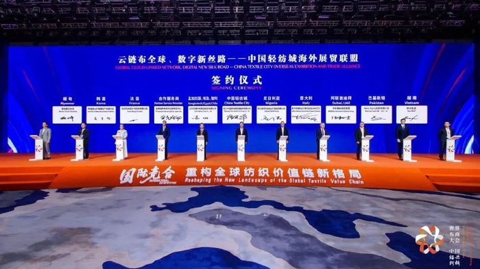 活动现场,中国轻纺城集团与浙江省纺织品进出口集团、江苏苏豪时尚集团、意大利国家出口联合协会、中东国际展览集团、韩国釜山纤维服装产业联合会等10家国内外机构签署战略合作协议,携手推进海外展贸中心建设,共同助力搭建纺织产业“抱团出海”的高能级平台。