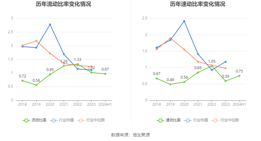 2024年上半年,公司流动比率为0.97,速动比率为0.75。
