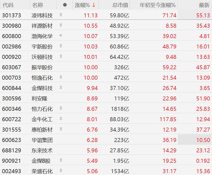 A股化工股强势,渤海化学、恒逸石化等多股涨停