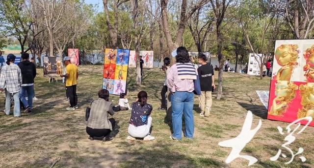 一路向东,遇见彩虹。4月13日至14日,由济南高新区总工会、团工委联合山东省美术家协会、山东美术馆、山东工艺美术学院共同举办的“画龙点睛”全国生成式人工智能艺术展暨《塗龙季》第三季展览从山东美术馆搬到彩虹湖畔,绿意蓬勃、生机盎然的公园美景邂逅艺术与科技的前沿探索,吸引了众多市民、青年入园享受艺术之美、科技之美、自然之美。