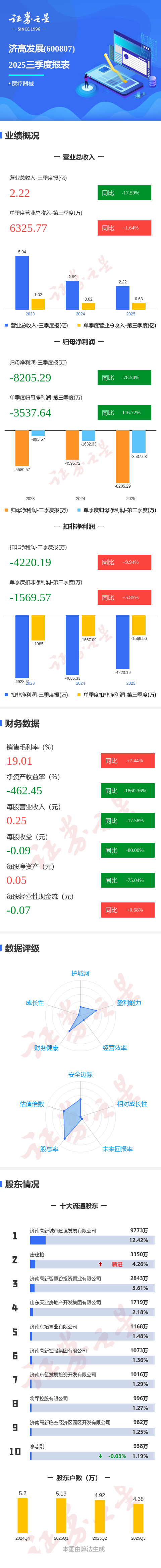 图解济高发展三季报:第三季度单季净利润同比下降116.72%