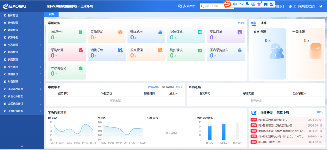 在瞬息万变的市场形势下,必须强化精益管理,才能不断提升运行效率和经营绩效水平。原PLMS3.0系统于2021年上线,基本实现了马钢大宗原燃料全品种采购业务全流程管理,但该系统基于宝钢业务模式开发,在适应马钢业务和管理方面存在不足。为进一步提高采购管理效率、风险防控和监督水平,为马钢经营管理和生产管理提供强有力支撑,对系统进行智慧化升级改造,推进新系统上线势在必行。