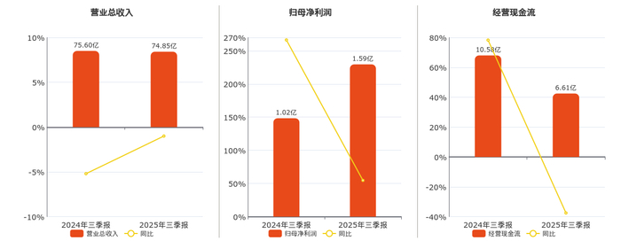 公司营业总收入为74.85亿元。归母净利润为1.59亿元,较去年同报告期归母净利润增加5604.04万元,实现2年连续上涨,同比较去年同期上涨54.69%。经营活动现金净流入为6.61亿元。
